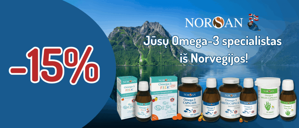 Norsan Omega-3 yra išskirtiniai papildai, pagaminti iš natūralių norvegiškų žuvų taukų Omega-3. Jie yra ypač gryni, be sintetinių priedų, ir turtingi Omega-3 riebalų rūgštimis, tokiomis kaip EPA ir DHA. Šios rūgštys yra būtinos širdies veiklai, smegenų funkcijoms ir regėjimui palaikyti.