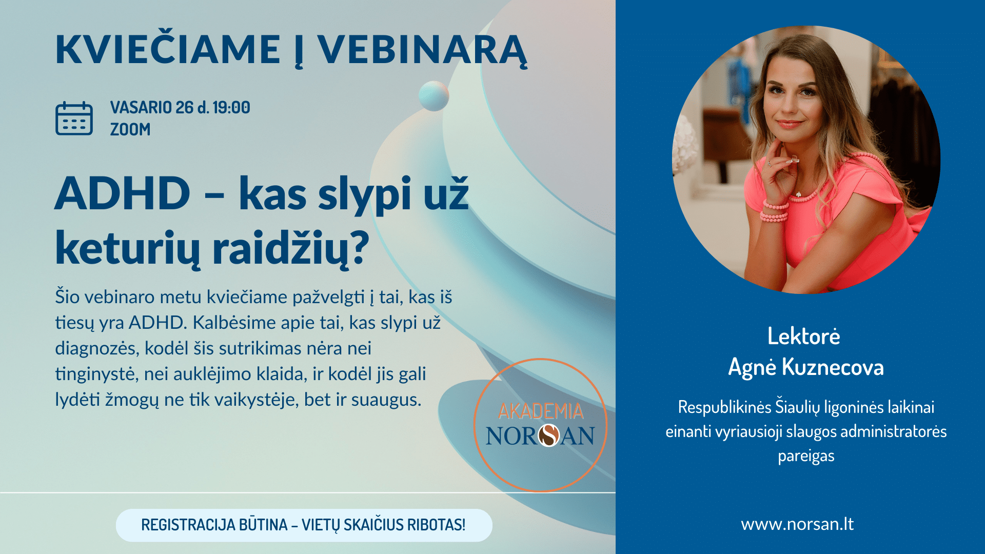 Šis vebinaras skirtas visiems, kurie nori geriau suprasti ADHD – sau, savo vaikui, artimajam – ir ieško ne vertinimo, o supratimo bei mokslo pagrįstų atsakymų.