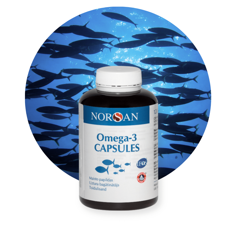 [Mūsų NORSAN žuvų taukai yra ypač švieži ir geros kokybės, todėl gerai toleruojami. Tai, kad Omega-3 kapsulėse esantis aliejus turi neutralų skonį ir kvapą, įrodo jo išskirtinę kokybę, be to, kapsulės nesukelia nemalonaus refliukso ar poskonio.
